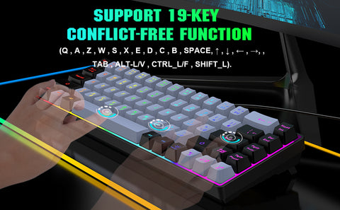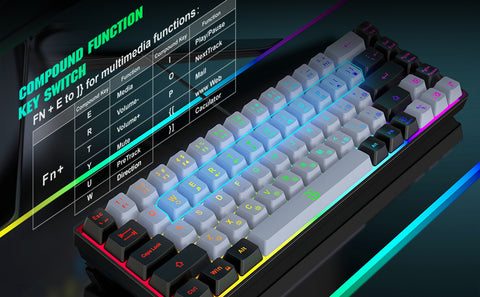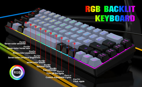 The 60% rgb keyboard include 6 backlight effects and 8 backlight color switching.Unlike other keyboards, you can directly choose your favorite RGB mode to use.